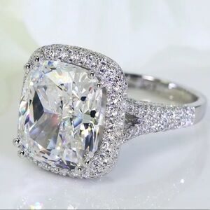 NEW Silver Cushion Diamond Dome Engagement Ring