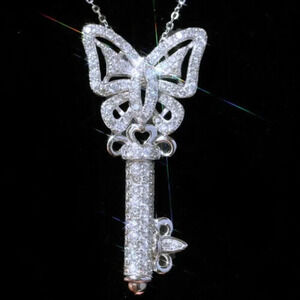 NEW Silver Diamond Butterfly Key Pendant Necklace