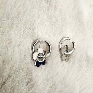 NEW Silver Flower Clover Huggie Hoop Earrings