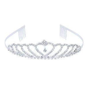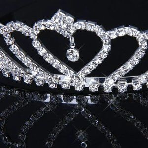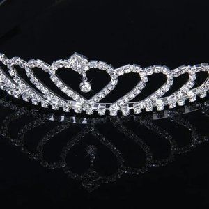 NEW Silver Heart Crystal Rhinestone Tiara - bridal, prom, dance, costume | OS