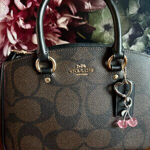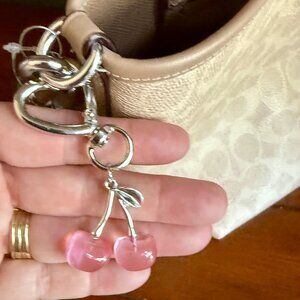 Brand NEW Silver Pink Cherries and Heart Keychain Bag Charm