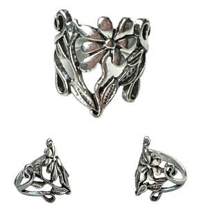 TAGS: Daisy Flower Floral Design Ring Antique Silver Art Deco Silver Plated Overlay Hippie Boho Fashion Jewelry Business Casual Gardener Nature Lover