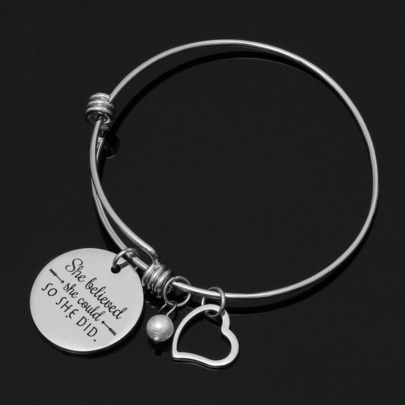 NEW Silver "She Believed She Could So She Did" Heart Bracelet