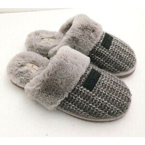 NEW Simply Southern Collection Scuff Slippers Gray Knit Soft Faux Fur 9M