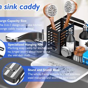 NEW Sink Caddy with Brush Holder with Removable Drain Tray for Sponge