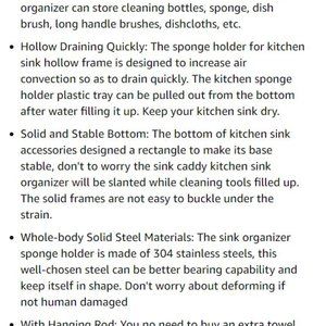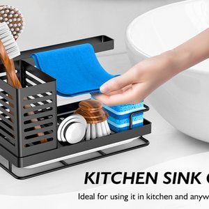 Super Capacity Storage: The sink caddy size is 8.5x4.5x4.88in. If there is enough free space on your kitchen countertop, this super capacity kitchen sink caddy would be your good choice. The kitchen sink organizer can store cleaning bottles, sponge, dish brush, long handle brushes, dishcloths, etc.
