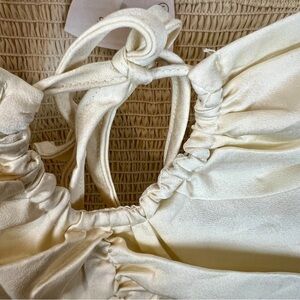 NEW Six/Fifty Blouse Keyhole Neckline Peplum Hem in Cream Size S