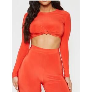 NEW Size 2 Pretty Little Things Twist Long Sleeve Knit Spice Orange Crop Top