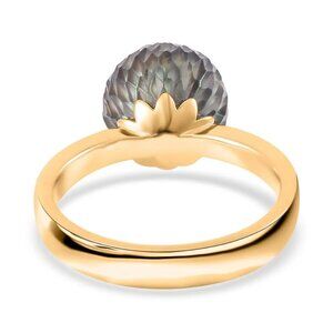 NEW IN BOX Carved Tahitian Cultured Pearl and Diamond Ring in Vermeil Yellow Gold Over Sterling Silver 0.10 ctw. Size 5. BB-40