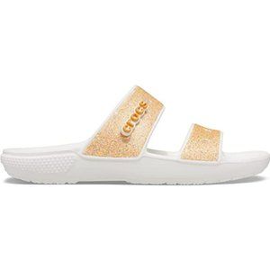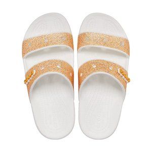 NEW Size 7 Womens Classic Crocs Glitter Sandal Slides, Orange Sorbet