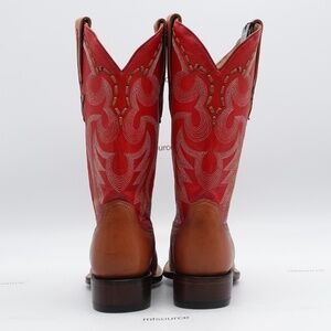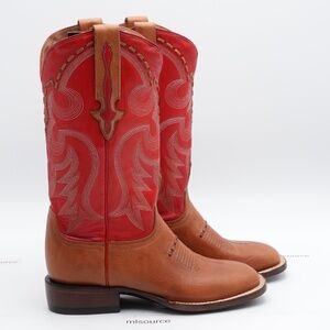 US Size 7.5 Women's Lucchese Cow Saddle Stitch Leather Western Boots M3790 Tan/Red - New in box.