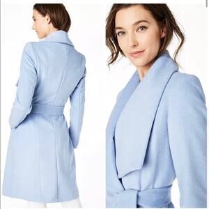 NWT Cole Haan Belted Wrap Coat Ice Blue