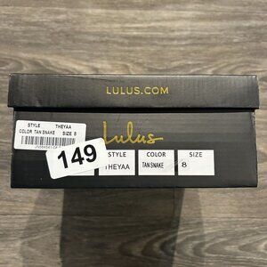 NEW Size 8 Lulus Theyaa Tan Faux Snake Embossed Square Toe High Heel Sandals