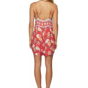 NEW Size L O'Neill Liame Juniors Printed Romper in Chrysanthemum Red MSRP $50