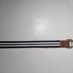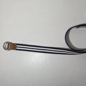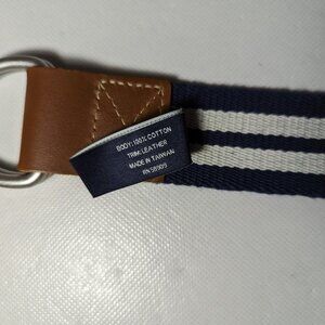 NEW- Size L/XL Mens Cremieux Cloth Belt Cotton Leather Trim Navy & White Striped