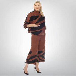 NEW Size M Joseph Ribkoff Black/Toffee Animal Print Knit Culotte Pants 223949