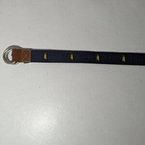 NEW- Size S/M Mens Cremieux Cloth Belt Polyester Dog w/ Scarf Design Navy