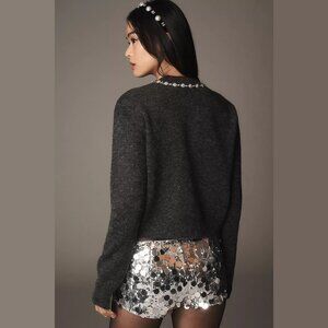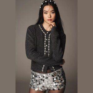 NEW Size XL Maeve Embellished Crew-Neck Cardigan Sweater - Grey