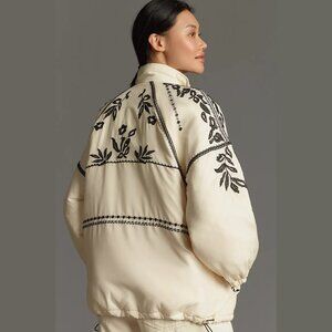 NEW Size XXS (Runs Large) - Anthropologie Embroidered Puffer Coat - Ivory