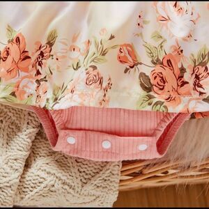 NEW Size 3-6 months 2 pc long sleeved pink ribbed romper floral bow and ruffles