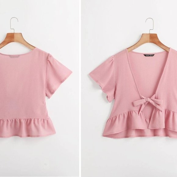 NEW!! Sizes M or L Ruffle Hem Tie Front Top