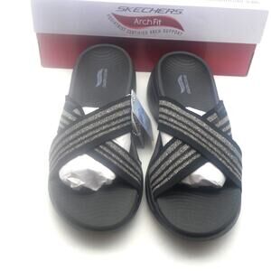 NEW Skechers Women's 10 Go Walk Arch Fit Sandals Serene Sandals Black Silver