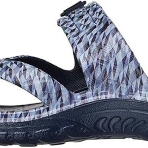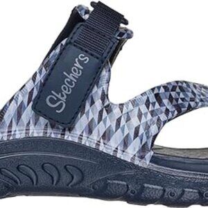 Popular Skechers Foamies Reggae style, Scenery pattern toe sandal in Navy color. Size 7 Medium are SO comfortable! Lightweight sculpted flexible Foamies. EVA (quality, durability, and lightweight design) Cushioned comfort footbed. Geometric printed upper with adjustable instep strap. Flexible traction outsole. 1-inch heel height. Machine washable, dry in shade. Skechers logo detail. NEW IN BOX.