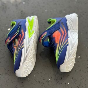* Worn Once ** - Brand: Sketchers - Size: 6 (toddler) - Black, yellow + orange light ups - Velcro
