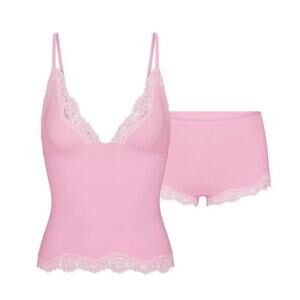 NEW Skims Fits Everybody Bubblegum Lace Triangle Cami and Boy Short Set 2X