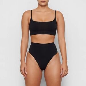 NEW Skims Seamless Sculpt Mid Waist Thong Onyx Size M