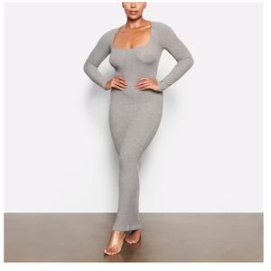 NEW • Skims • Women’s Soft Lounge LONG SLEEVE DRESS Heather Gray Medium