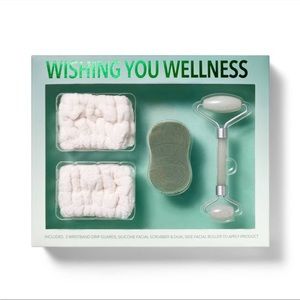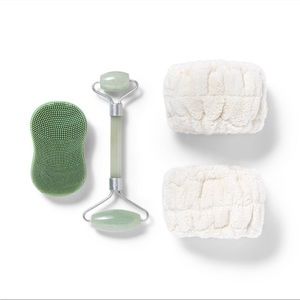 NEW Skincare Tool Gift Set - 4ct - Jade Roller, Exfoliating Scrubber, Wristbands