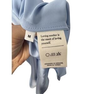NEW Sleeper Boheme Feather Slip Dress Blue Satin Midi Size M Ostrich Versatile