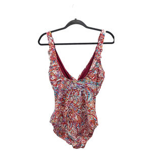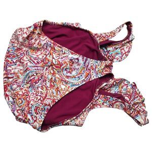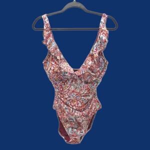 NEW Slimming Lauren Ralph Lauren One Piece Sz 14 Women's Swimsuit Bathing Suit Paisley Ruffle