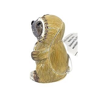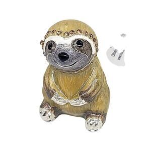NEW with Tag Sloth Enamel Jeweled Magnetic Hinged Trinket Jewelry Box Gold Tan 2.36"