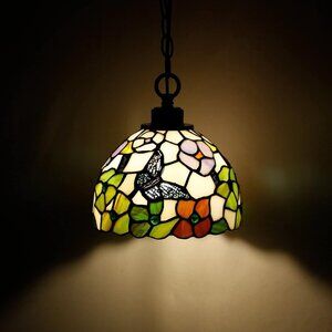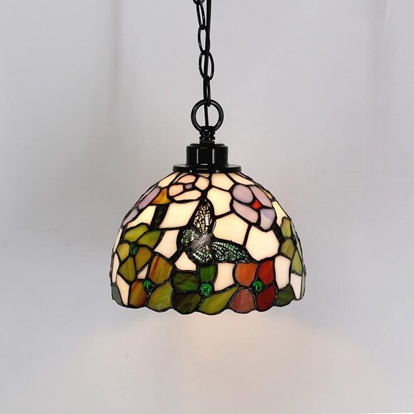 NEW Small Tiffany Pendant Light Plug in Stained Glass Swag Lamp 8X8X181" Hanging