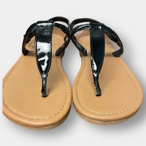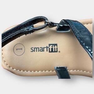 NEW Smart Fit T Strap Sandal Black Faux Patent Leather Girl's Size 1
