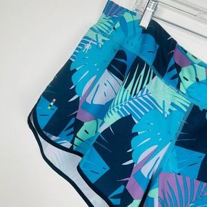 Features: SmartWool Merino Sport Lined Athletic Shorts. The print is ‘Deep Navy Palm’.
