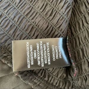 Shell: polyester; lining: polyester