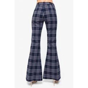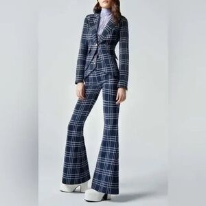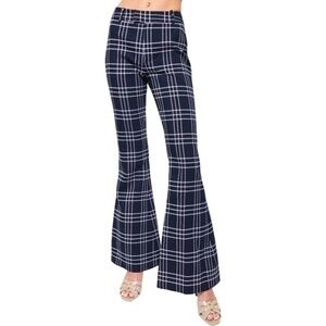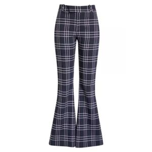 NEW Smythe Cotton Wool Mid Rise Plaid Bootcut Trouser Pants in Navy Lilac Grid