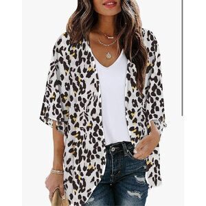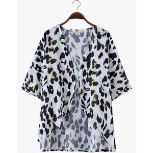 NEW~ Snow Leopard Chiffon Kimono Top Cardigan Loose Cover Up S