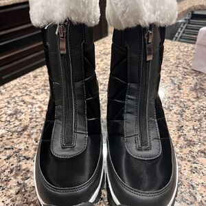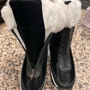 New. black zip up, quilt style snow boots with fuzzy inside and tops.