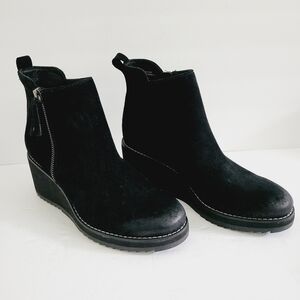 NEW Sofft Emeline Black Waterproof Suede Wedge Bootie Size 7.5
