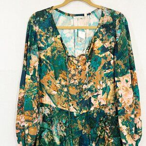 NEW Soft Surroundings Dakota Maxi Dress Long Sleeve Green Floral Boho - LARGE
