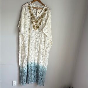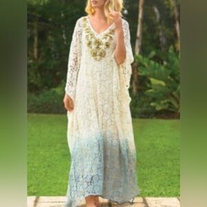 NEW Soft Surroundings Jarana Crochet Beaded Ombré Caftan Maxi Dress L/XL