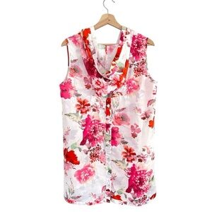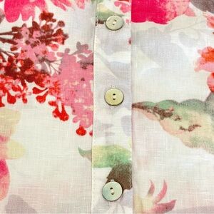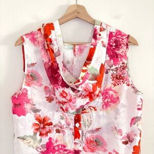 NEW Soft Surroundings Linen Floral Tunic Sleeveless Button Back Hooded Top MP