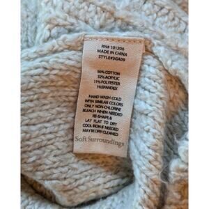 New with tags ($110 retail) Soft Surroundings Petite Marianna cable knit sweater in heathered taupe. Crew neckline, long sleeves, ribbed trim at collar cuffs and hem, and intricate front cable detail with an incredibly soft textured knit. Easy relaxed fit that layers well for cool weather, neutral color works with jeans or trousers for everyday outfits. Approximate measurements are below. 2 day shipping!