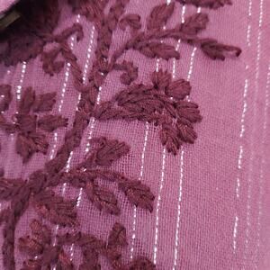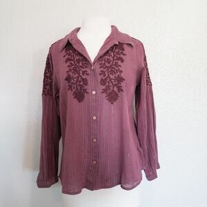 NEW Soft Surroundings Rasberry Red Striped Button Up Size M