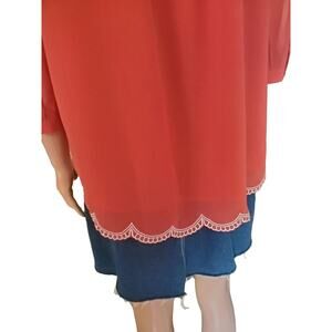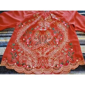 NEW Soft Surroundings Size PM Coral Embroidered Keyhole Scalloped Blouse