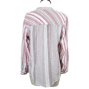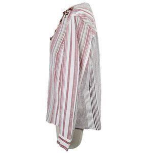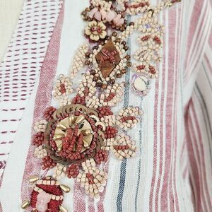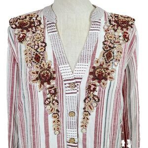 NEW Soft Surroundings Top XS Red Beige Striped Beaded Button-Front Boho Blouse